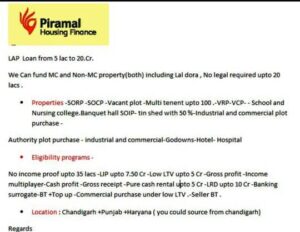 Gross Receipts/Sales turnover Program:- Multiplier of 1.5 times of the Gross receipts and 100% FOIR. Loans upto 10 Cr.Ā