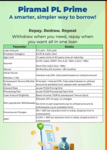 • Limit Amount: ₹ 10  Lakhs to ₹ 5 Crore  Starting Roi 9.75 per annum Or 1.25%per month