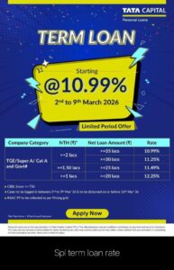 • Loan Amount: ₹ 10 Lakhs to ₹ 19.99 Lakhs  Roi -10.85%
