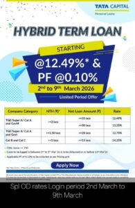 Note -: Discount & OFFERS (Amount , R.o.i ,P.fee tenure,insurance, varies as per profile & Nature of Business net take home.